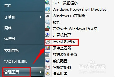 1、点击开始 - 管理工具,然后就能看到计划任务了,如下图所示。