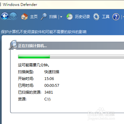 6:在“windows Defender”中点击“扫描”