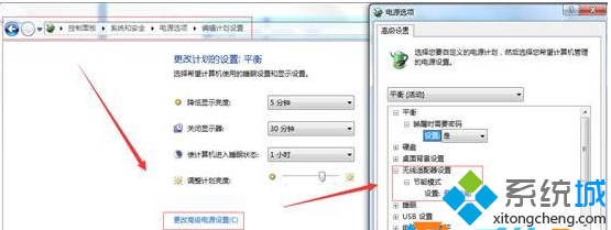 出现这样的情况多半是在笔记本win7系统进入休眠或睡眠关闭了无线适配器的,这是由于电源选项设置为节能模式模式引起的,则无线网络连接可能不会重新连接。