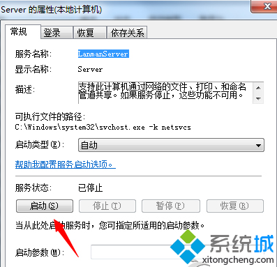 3、在弹出的服务对话框,找到【server】服务,双击进入设置对话框;